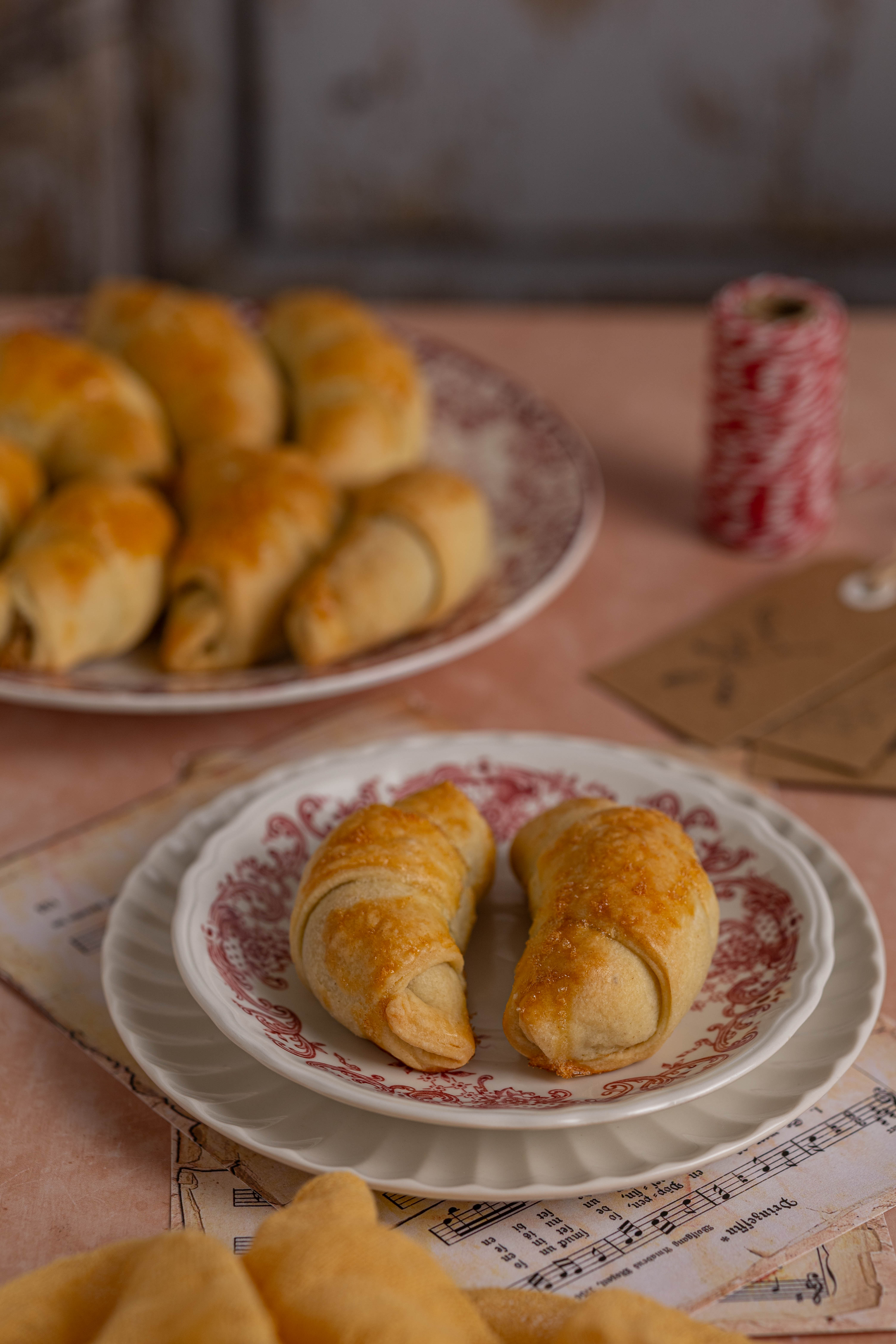 Těsto rozdělíme na 2 stejné části a každou z nich vyválíme do kruhu o průměru cca 30-31 cm. Každý kruh rozdělíme nožem nebo radýlkem na 12 částí. Na nejširší část každého nově vzniklého trojúhelníku dáme lžičku ořechové náplně a smotáme jako rohlík. Na závěr můžeme rohlíček ještě lehce poválet, aby se vrstvy spojily. Vytvarujeme tvar rohlíčku a pokládáme na plech s pečícím papírem nebo podložkou. Rohlíčky by se měly vejít na 1 plech.